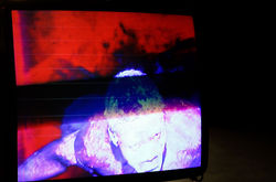 8 suspended cathode ray tubes, 1 cathode ray tube placed on the floor, salt, 2 video projections.