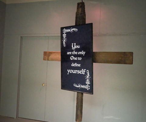 Flat screen on a wood cross